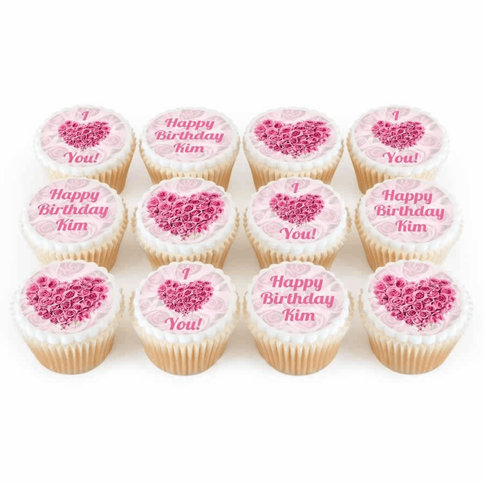 Personalise these Rose Heart cupcakes, so show someone how much you love them on their birthday,