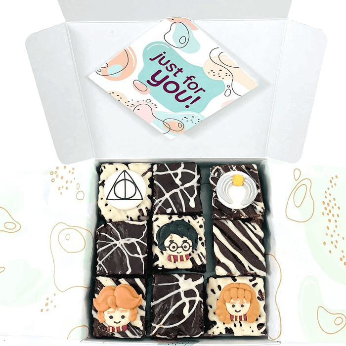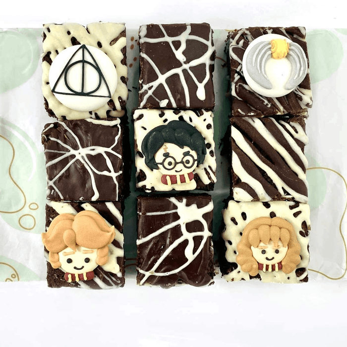 Embark on a magical culinary journey with our Harry Potter-Themed Chocolate Fudge Brownies. Delight in the enchanting flavors of rich chocolate fudge while immersing yourself in the world of Hogwarts. Each brownie is intricately crafted with Harry Potter-inspired designs, capturing the essence of this beloved wizarding world. Indulge in the velvety smooth texture and decadent taste as you savor every bite. Order now and let our Harry Potter-Themed Chocolate Fudge Brownies cast a spell of deliciousness right to your doorstep. You'll receive 9 x 5cm brownies covered in milk and white chocolate with Harry Potter icing toppers.