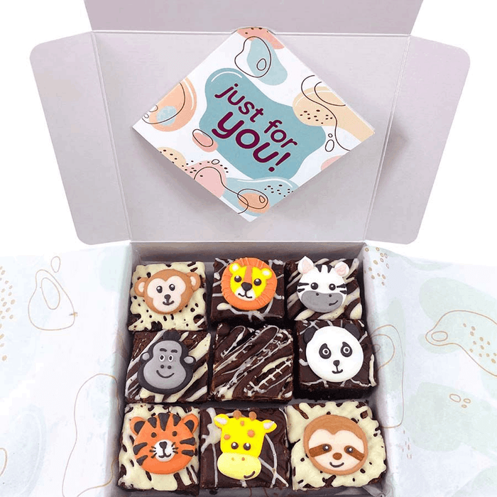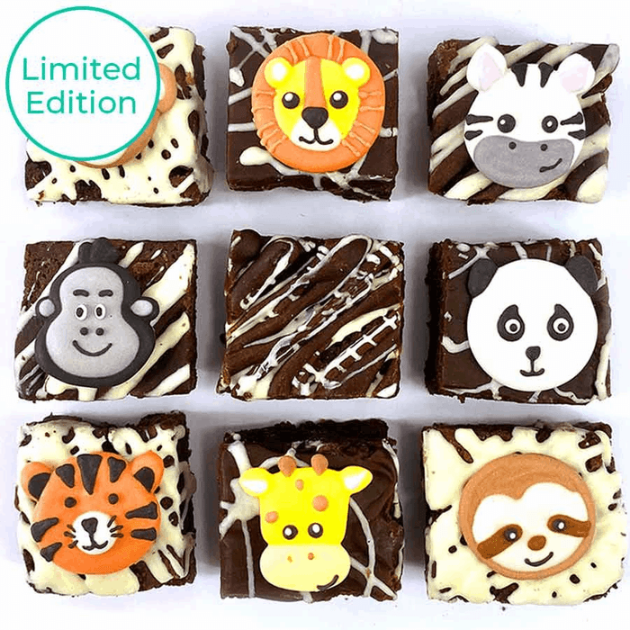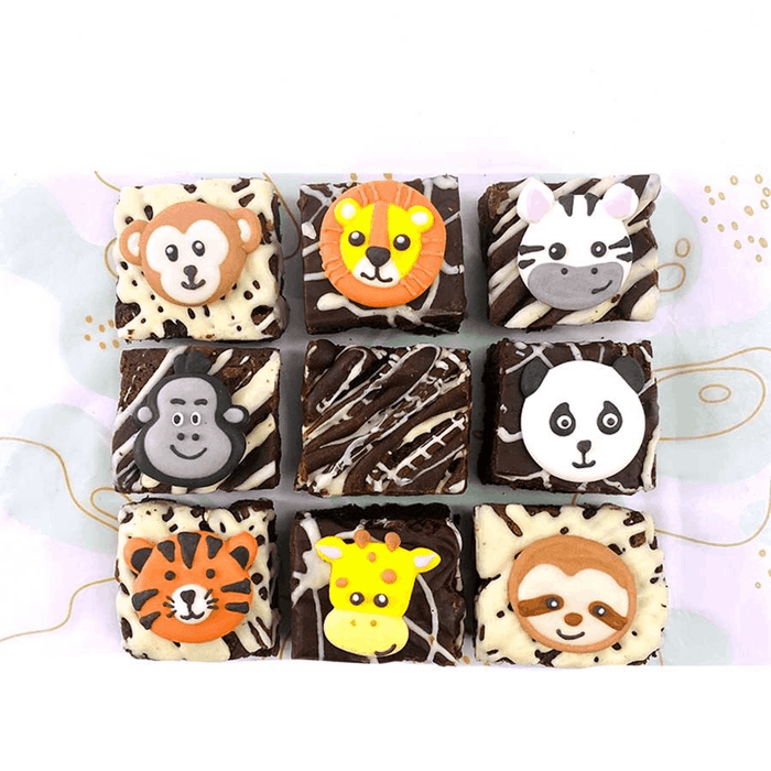 Embark on a delicious safari adventure with our Safari-Themed Chocolate Fudge Brownies. Explore the wild flavors of rich chocolate fudge as you indulge in these delectable treats. Each brownie is meticulously handcrafted, adorned with captivating safari-inspired designs that will transport you to the heart of the savannah. Let the velvety texture and intense chocolate taste transport your taste buds on a safari of flavor. Order now and let our Safari-Themed Chocolate Fudge Brownies bring the spirit of the safari to your doorstep. You'll receive 9 x 5cm brownies covered in milk and white chocolate with safari icing toppers.