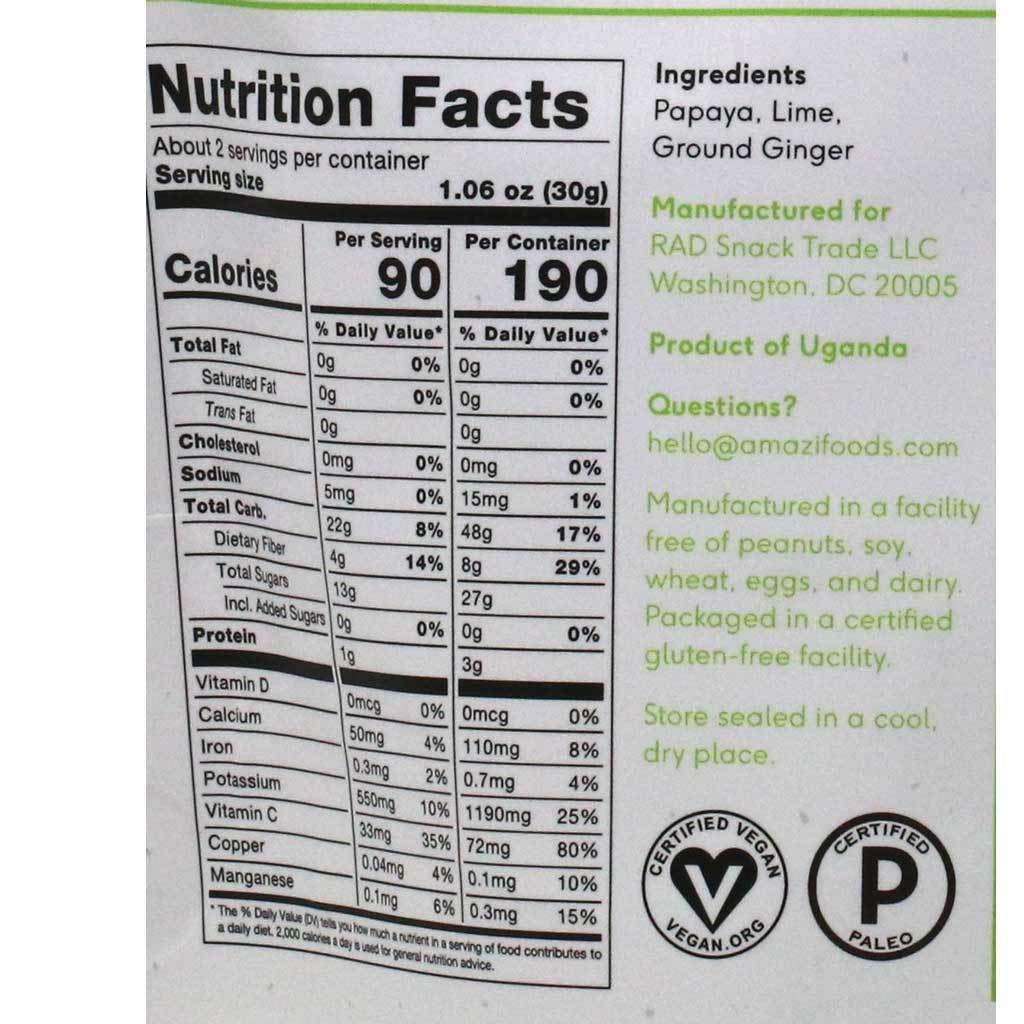 Made simply with ginger, fresh squeezed lime, and organically grown papaya, every Amazi Ginger Lime Papaya Strip balances zesty and earthy notes for a snack that is as equally tasty as it is healthy. With a texture that is tough and then chewy, our Papaya Strips are like a plant-based jerky or all-natural fruit leather. Unlike other dried papaya options on the market, we don’t use any emulsifiers,...