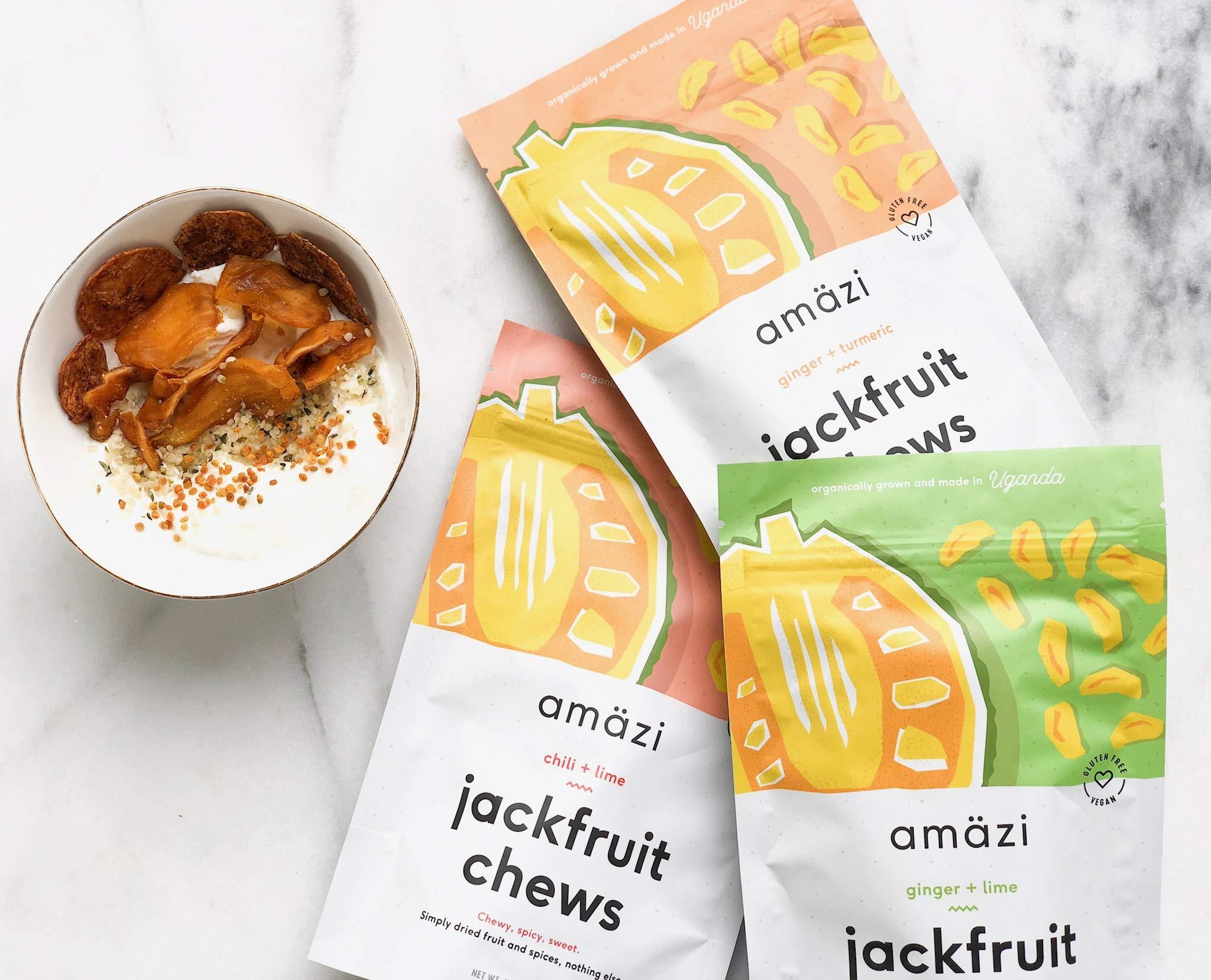 Three simple ingredients: Jackfruit, Ginger, Turmeric. Yep, that's it. Amazi Ginger Turmeric Jackfruit Chews balances warming and earthy notes for a snack that is as equally tasty as it is healthy. With a truly unique, bold flavor that’s like a cross between apple, banana, mango, and pineapple, these chewy treats are packed with natural antioxidants, fiber, and are an anti-inflammatory powerhouse...