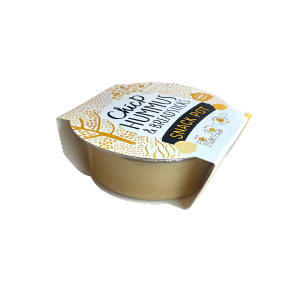 A delicious, nutritious ambient (non refrigerated) hummus and breadstick snack pack