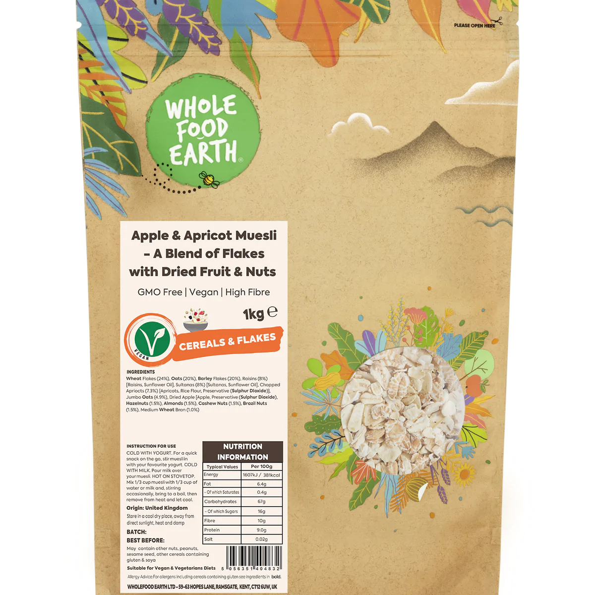 Apple & Apricot Muesli is GMO Free, good for Vegans, it is Dairy Free