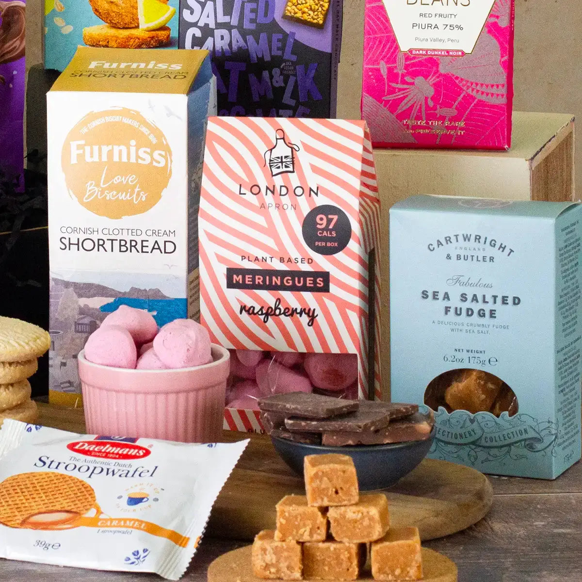 From creamy fudge and rich chocolates to airy meringues and gourmet popcorn, every element of this hamper has been carefully chosen for quality and taste. Beautifully presented and ready to gift, it’s a thoughtful and versatile choice that’s as impressive to receive as it is delicious to enjoy.