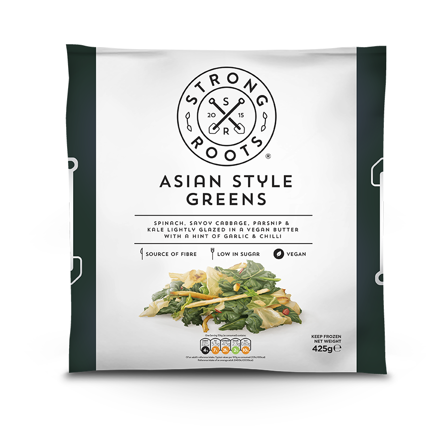 Spinach, Savoy Cabbage, Kale, Parsnip vegetable mix, lightly glazed with a non-dairy butter with a hint of garlic and chilli. 425g.