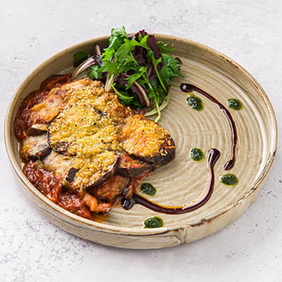 A classic Italian dish of sliced aubergines, layered with our own handmade rich ...