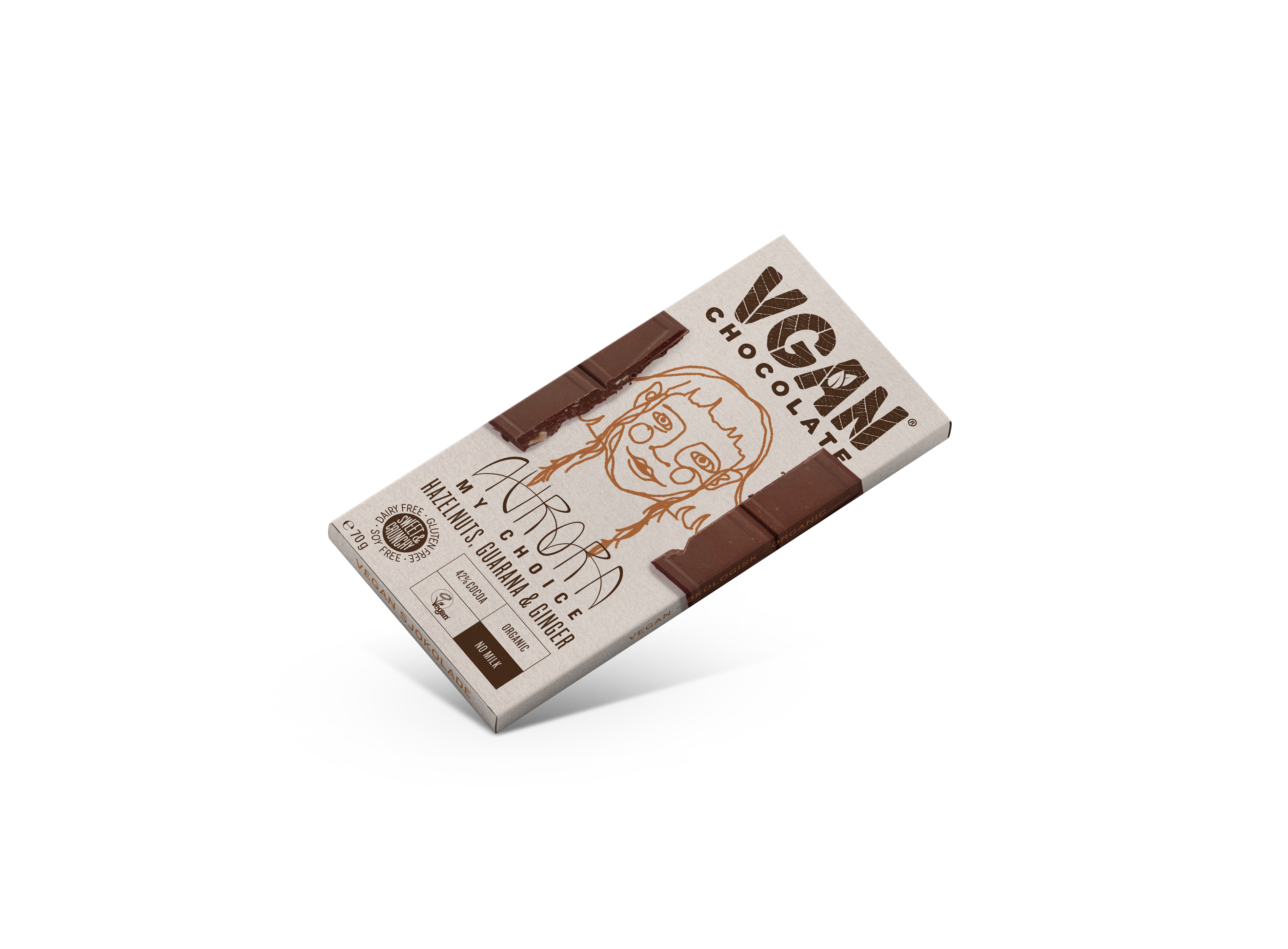 Cane sugar*,cocoa mass*, cocoa butter*, coconut cream*, hazelnut*(10%), dehydrated coconut nectar*,coconut milk powder*,guarana powder* (1,5%), ginger powder* (0,7%), sunflower lecithin*,Bourbon vanilla*.
