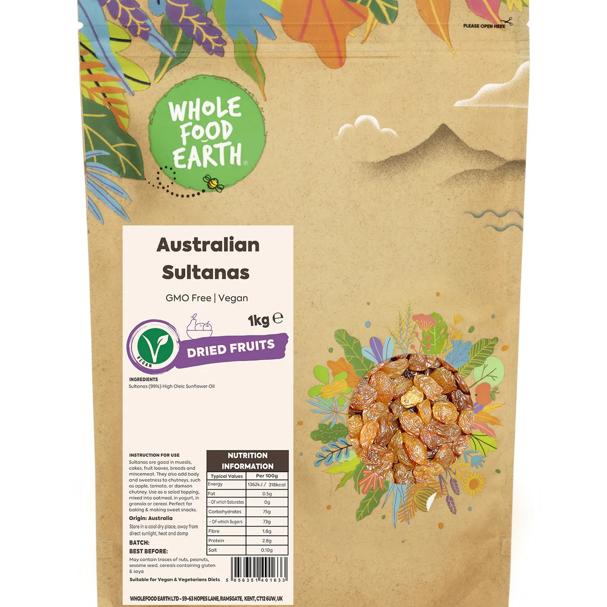 Our Australian Sultanas are GMO Free, loved by Vegans and these are Dairy Free, and have No Added Sugar