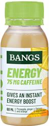 Bangs energy shot uses nature's own ingredients such as caffeine, ginseng, biotin, and niacin that work in synergy to help give you a pure energy boost. Just one 60ml shot supplies your body with 75mg caffeine to boost your alertness and energy levels instantly and naturally. It's a tasty and quick fix without any added sweeteners, containing only the fructose naturally occurring in the shot, ...