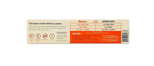 Pick your pasta wisely. Banza helps you make better choices with noodles made out of chickpeas. The result is a gluten-free, nutrition-rich dinner with twice the protein and four times the fiber of traditional pasta, plus half the net carbs. This angel hair variety has the same texture and taste too, and tastes great with tomato or alfredo sauce. Ingredients Chickpeas, Tapioca, Pea Protein, Xanth...