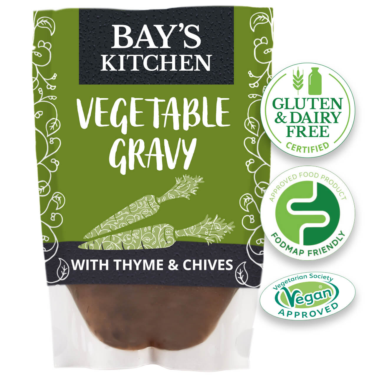 Delicious vegetable gravy enhanced with thyme and chives. It's Low FODMAP, Gluten Free, Dairy Free & Vegan!