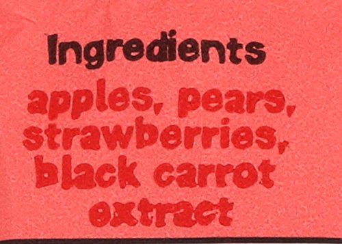 Delicious pure fruit rolls, perfect for lunchboxes and a great on-the-go healthy snack. What's inside? Strawberry, apple, pear, a little black carrot and absolutely nothing else 100% pure fruit & veg. No added sugar and never from concentrates. A full cup of fruit in each pack. Same natural sugars as an apple. High in fiber.