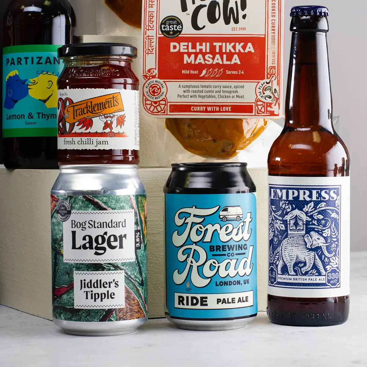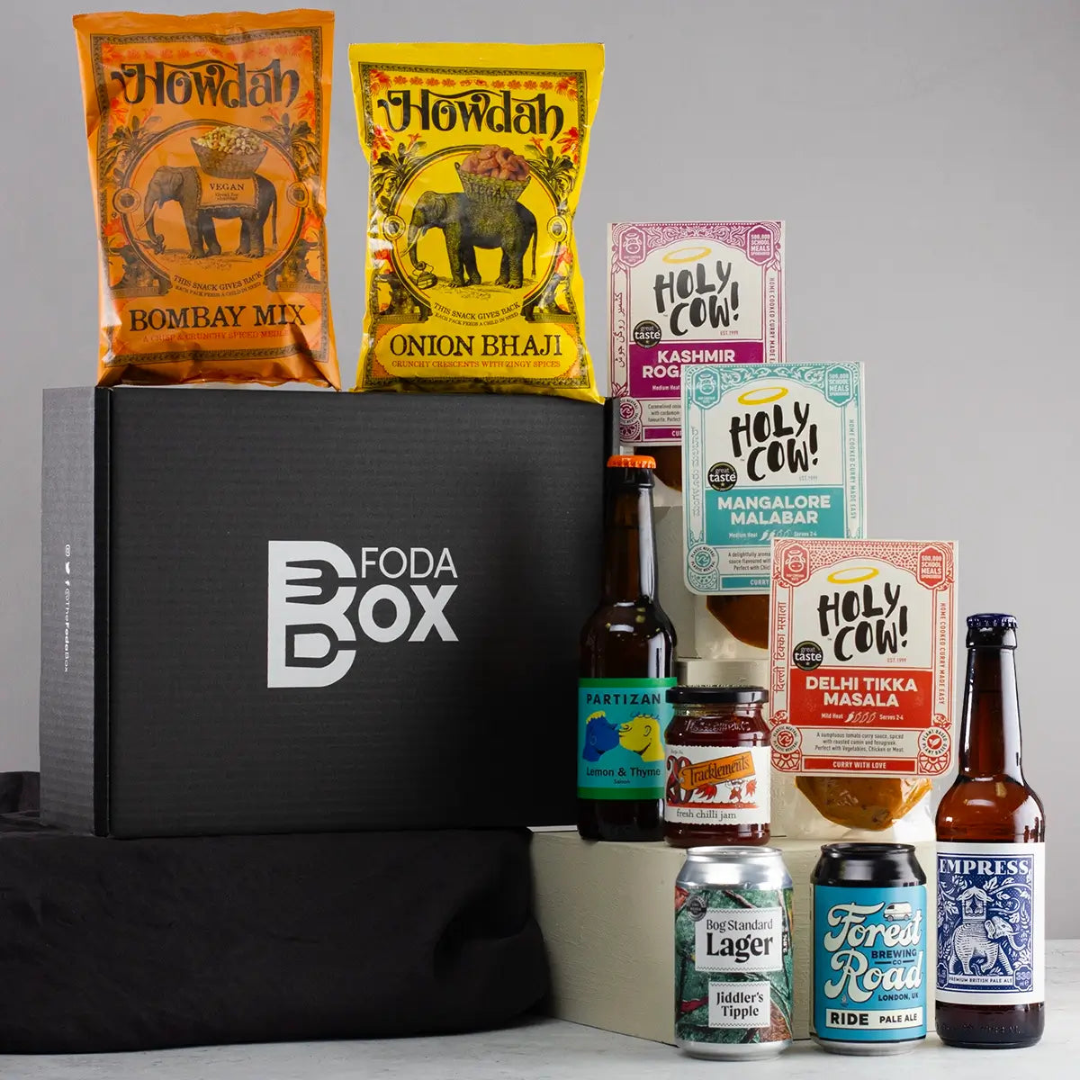Are you searching for the perfect Father's Day gift that blends flavour, fun, and quality? Our Beer and Curry Night Gift Box is an exceptional choice. This unique set features a trio of Holy Cow!'s award-winning curry sauces, ranging from mild to hot, for an authentic homemade curry experience in minutes. Paired with a delicious spicy chilli jam and a selection of FodaBox's finest craft beers, this gift set is tailored for dads who relish a rich and satisfying meal without the fuss. Embracing the British tradition of curry night, our gift box offers both convenience and exceptional taste, making it an ideal treat for any Dad who loves gourmet delights.