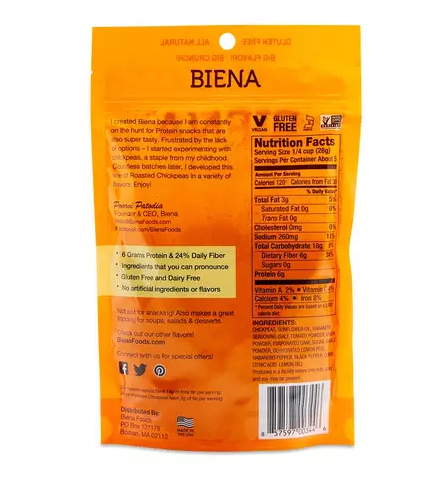 A super delicious Habanero flavor with a hint of lemon. Ingredients Chickpeas, Sunflower Oil, Habanero Seasoning (Salt, Tomato Powder, Onion Powder, Evaporated Cane Sugar, Garlic Powder, Dehydrated Lemon Peel, Habanero Pepper, Black Pepper, Cumin, Citric Acid, Lemon Oil)