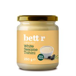 Bett'r white sesame tahini is made entirely from roasted and peeled organic sesame seeds. Its super fine texture and pleasant aroma make it suitable for making rich smoothies, salad dressings and a variety of desserts.