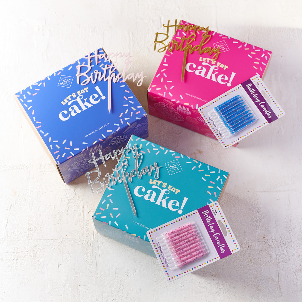 Celebrate birthdays in style with our Ultimate Birthday Pack, designed to make any birthday extra special! This pack includes our delectable triple-layered Victoria Sponge Cake, a pack of birthday candles, and a cheerful "Happy Birthday" cake topper, all presented in our celebration gifting box sleeve!