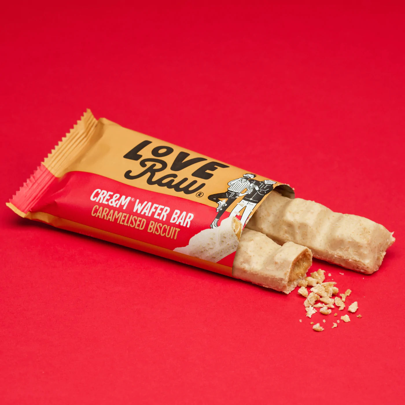 The iconic crispy wafer, filled with a delicious plant-based biscuit cream and covered in a mouthwatering caramel coating. Finished off with a crunchy biscuit crumb that has a hint of cinnamon, giving you the perfect blend of sweet and spice with every bite.