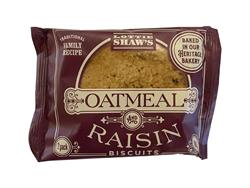 A crisp oatmeal biscuit with raisins and cinnamon