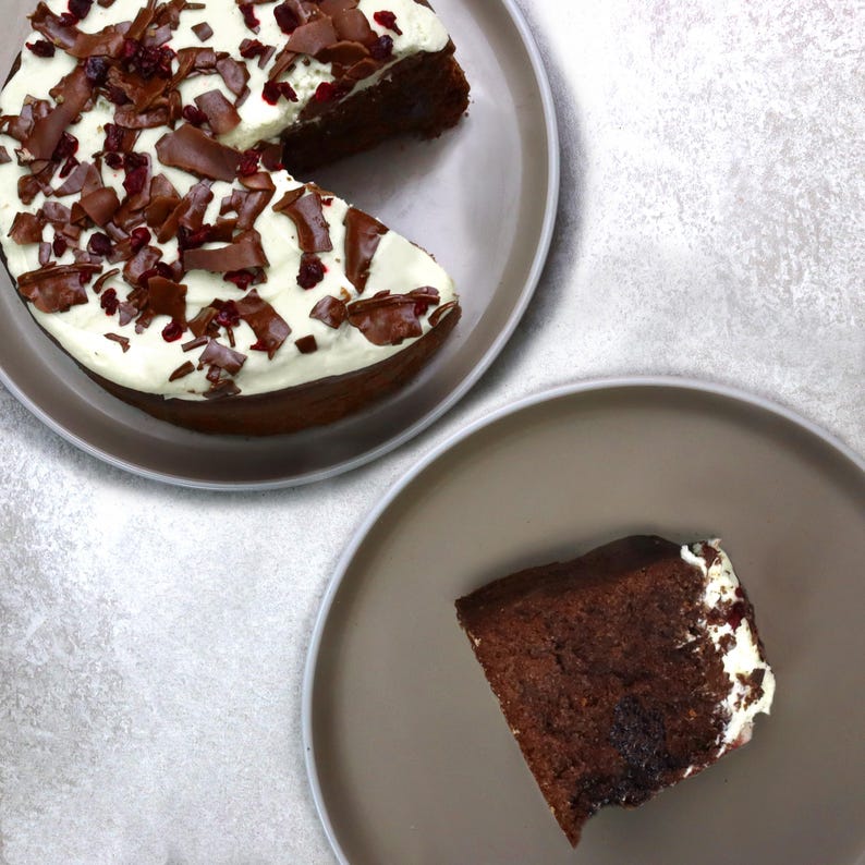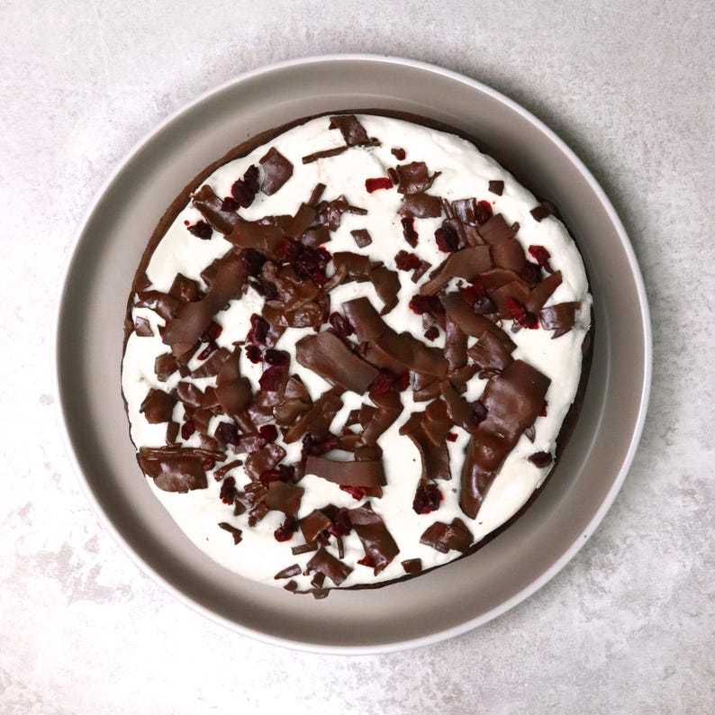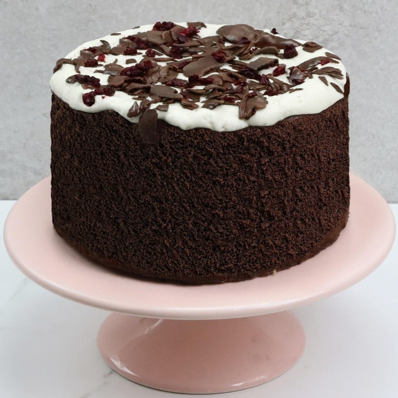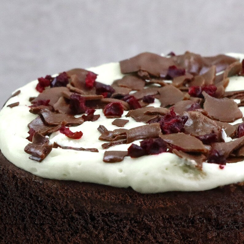 What's inside, you ask? You'll receive a 5-inch wide, 5-inch tall chocolate sponge cake, infused with cherry jam and topped with creamy icing dried cherries and even more rich chocolate shavings.