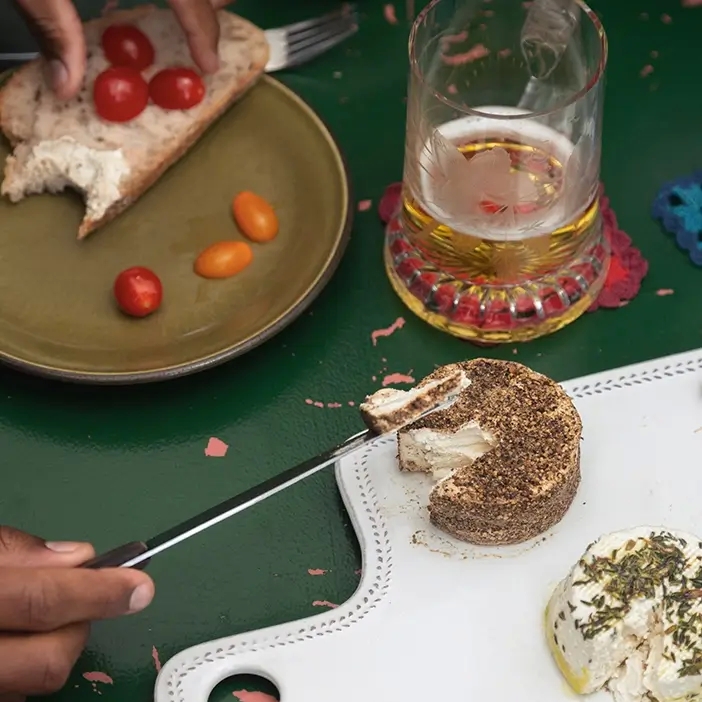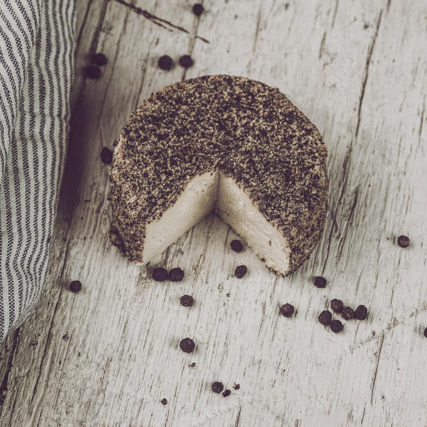Plant-based alternative to fresh cheese with pepper. Made in Switzerland from organic cashew nuts. Fermented following traditional Swiss cheese-making methods.