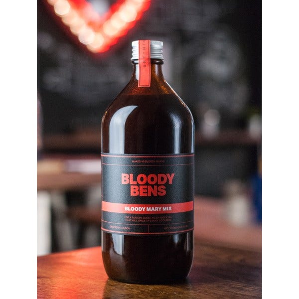 Bloody Bens Bloody Mary Mix. This mix is perfect for Bloody Mary's. All you need with Bloody Bens Bloody Mary Mix is to add fresh tomato juice, a dash of lemon juice and ice. A Bloody Mary has never tasted so good!