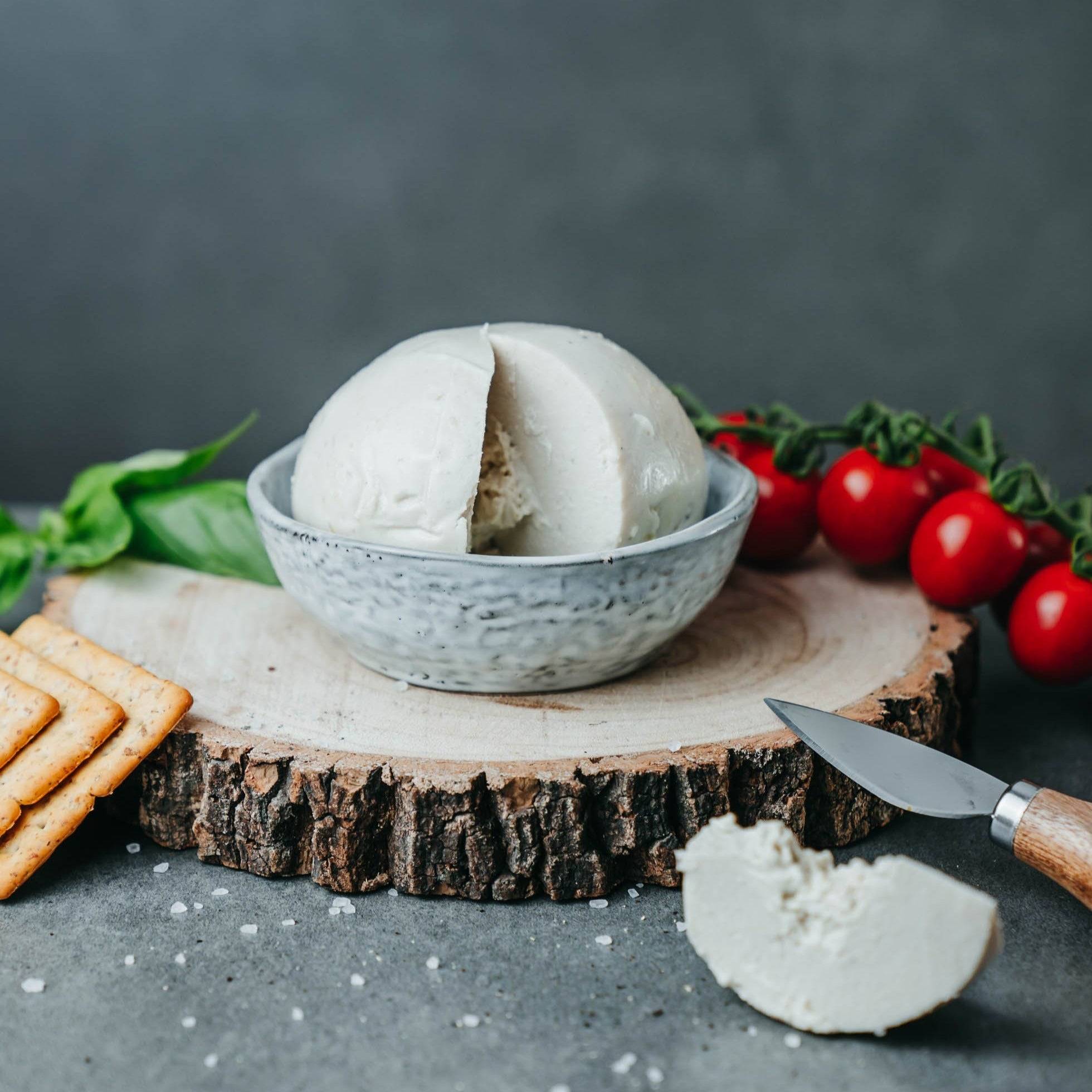A creamy mozzarella style enriched cheese with an oozing cream centre, perfect for salads, pizzas and enjoying with vegan charcuterie.