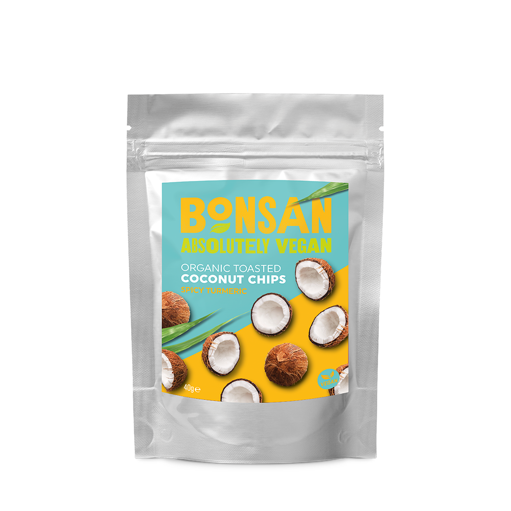 Our crunchy Spicy Turmeric Coconut Chips are made from fresh matured 100% organic coconuts and natural seasonings. These chips are satisfying, nutritious and full of fibre. Packed in a handy re-sealable pouch, they are perfect for when you need a grab and go snack! INGREDIENTS Coconut* (89%), Coconut Sugar*, Garlic*, Onion*, Chilli*, Sea Salt, White Pepper*, Ginger*, Turmeric* (0.4%), Lemon Peel...