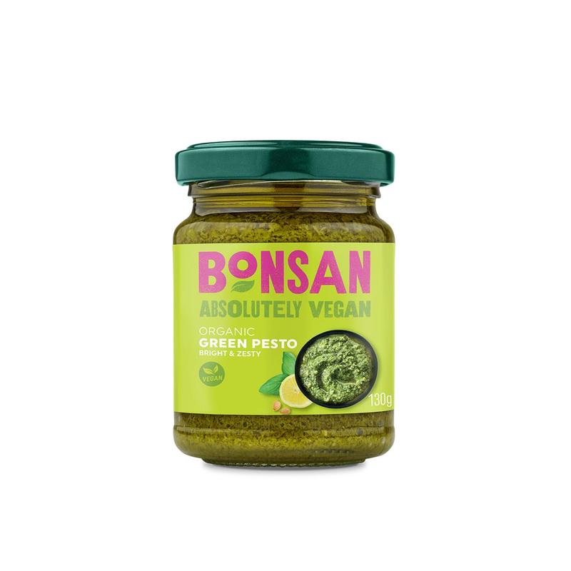 Our vegan Green Pesto is packed full of basil & pine kernels using a dairy free Italian recipe. Enjoy stirred through pasta or use to top bruschetta.