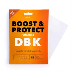 The Lifebio Boost & Protect patch offers a powerful combination of vitamins D3, K2, and B12 for bone strength, immunity, cellular health, and energy. Each transdermal patch delivers 4000 IU of D3, 3mg of B12, and 200 mcg of K2, ensuring enhanced absorption by bypassing the digestive system. Vitamin D3 boosts immunity and cell health, B12 aids energy release, and the D3-K2 combination supports opti...