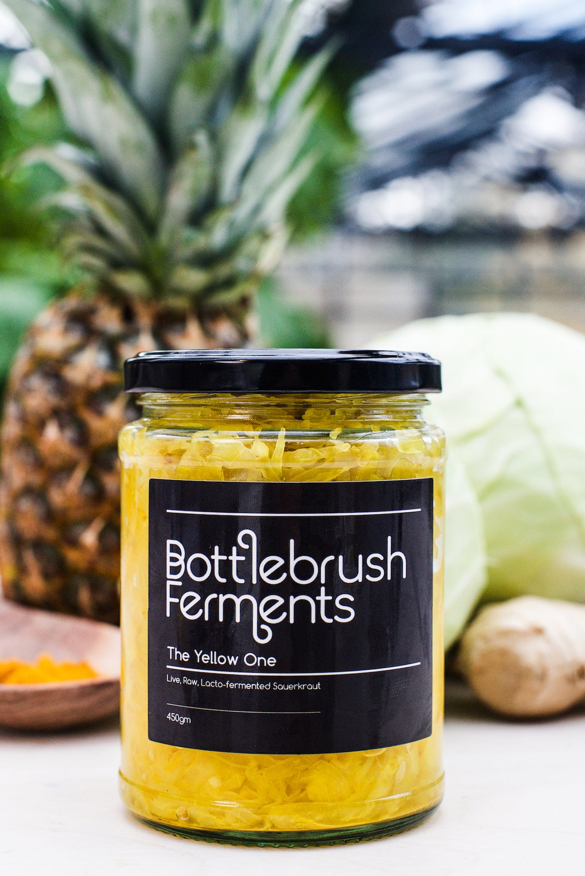 The Yellow One adds colour and flavour to any dish. Pineapple, ginger and turmeric compliment the base of white cabbage. Plus, it's full of beneficial bacteria! Try it with white fish, meat, salads or spicy dishes.