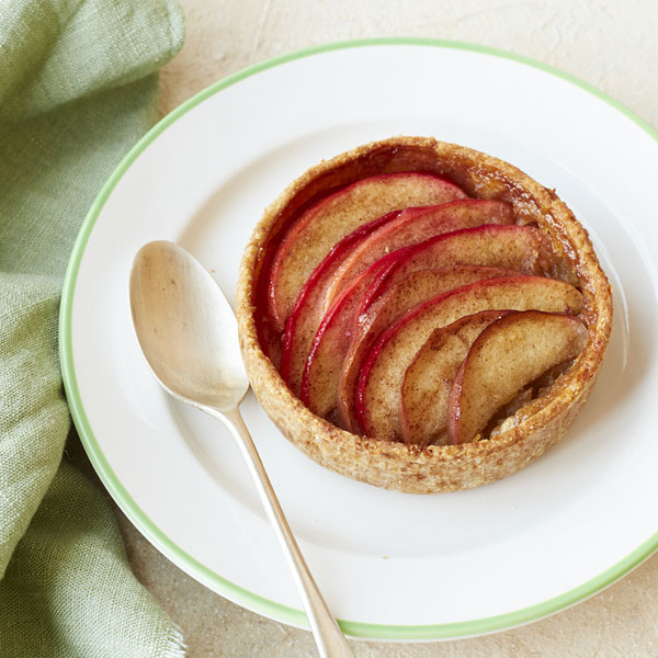 Classic british bramley apple topped with slices of sweet dessert apple in a crisp spelt, almond and oat crust. Each Pack Contains 2 Tarts.