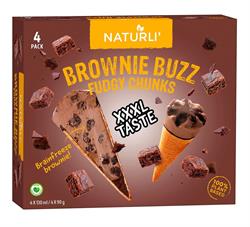 Naturli Brownie Buzz Plant Based Ice Cream Cone 4x130g. Have you ever dreamed of a silky soft and creamy, plant-based ice cream waffle - with a delicious fudge brownie taste? At Naturli' we specialize in fulfilling wishes and we are proud to present: Naturli' Brownie Buzz Wafer. A 100% plant-based and delicious ice cream cone.