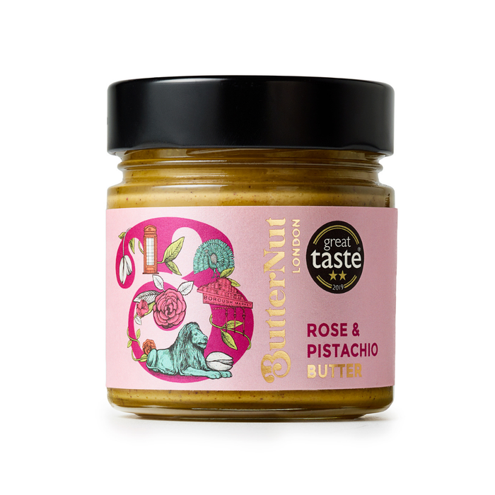 Our Rose & Pistachio Butter is luxuriously rich and creamy pistachio butter infused with the delicate musky notes of rose.