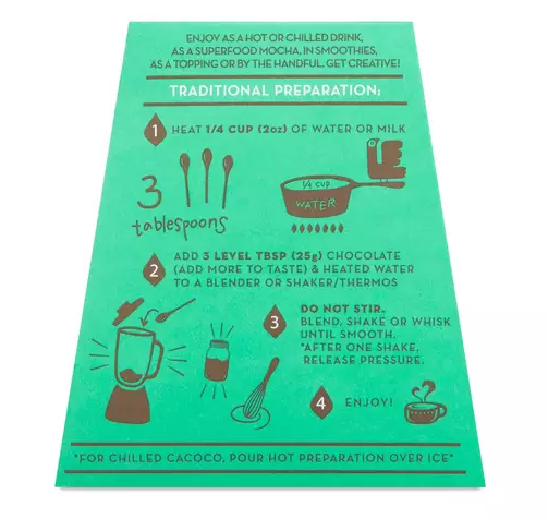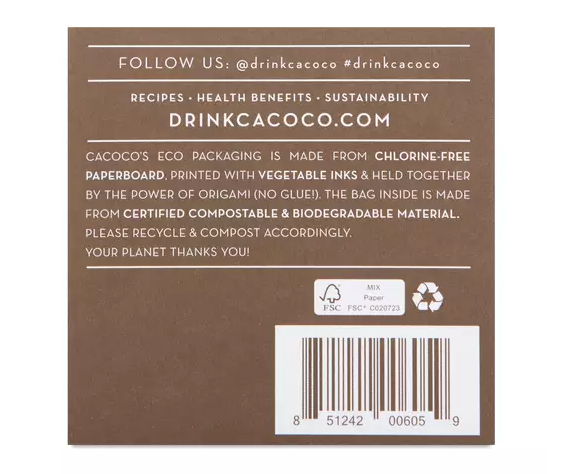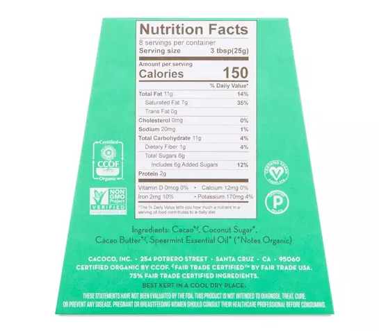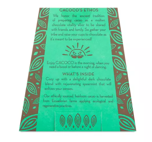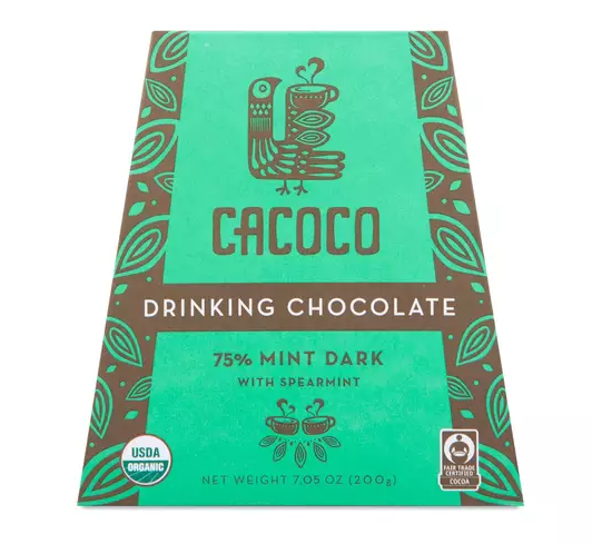Cozy up with a delightful dark chocolate blend with rejuvenating spearmint that will enliven your senses. Cacoco’s ethically sourced, heirloom cacao is harvested from Ecuadorian farms applying ecological and regenerative practices. Enjoy as a hot or chilled drink, as a superfood mocha, in smoothies, as a topping or by the handful. Get creative! Ingredients Cacao*, Coconut Sugar*, Cacao Butter*, S...
