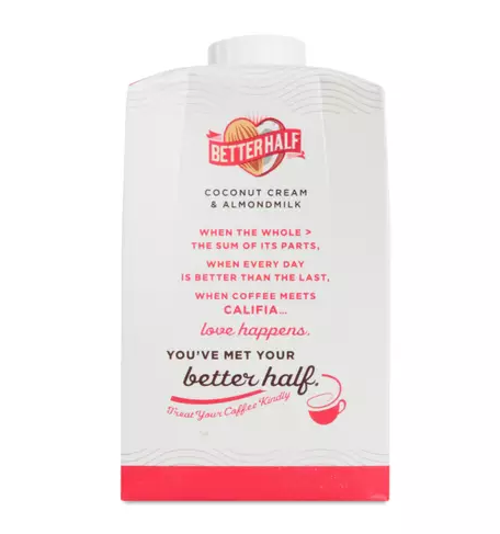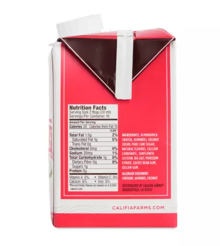 Califia Farms’ best-selling Unsweetened Almondmilk is now available in a shelf-stable package. It delivers the same delicious, creamy taste people know and love, and is the Ingredients Almondmilk (Water, Almonds), Calcium Carbonate, Sunflower Lecithin, Sea Salt, Natural Flavors, Locust Bean Gum, Gellan Gum, Potassium Citrate.