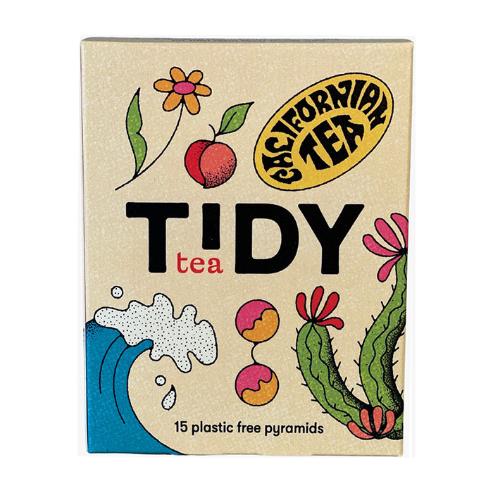 A dreamy blend of black tea & peach for that retro West Coast feel. The aim of Tidy Tea's California tea is to shut out the world and let your mind wonder, let it take you back to the carefree decades of the 60s and 70s on Americas West coast and all over a cuppa.