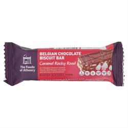 Belgian Chocolate Caramel Rocky Road Biscuit Bar made with our own caramel biscuits and delicious vegan fluffy marshmallows.