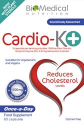 Cardio-K+ Tablets (Cholesterol Management) contains Plant Sterols, Monacolin K Extract & CoQ10 - take 2 capsules daily for maintenance or 3 capsules daily for cholesterol reduction