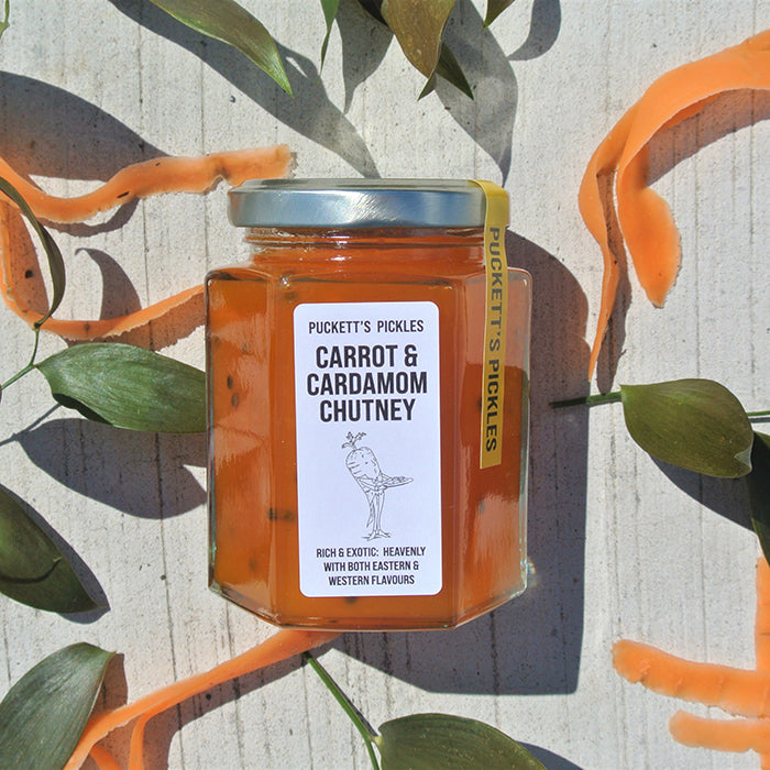 Ingredients: British Carrots (30%), British Sugar, Fresh Ginger, Lemons, Oranges, Organic Cardamom Seeds, Apple Pectin