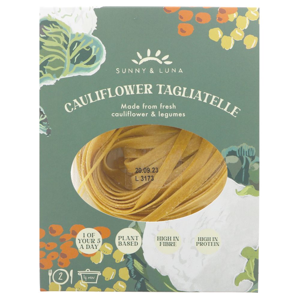 This tagliatelle is made with 50% cauliflower and legumes, making it 1 of your 5-a-day. The legumes (hello chickpeas, lentils and green peas) mean one portion has 20g of protein - now that's a lot of protein. On top of all of that it's fresh, plant-based and authentically Italian.