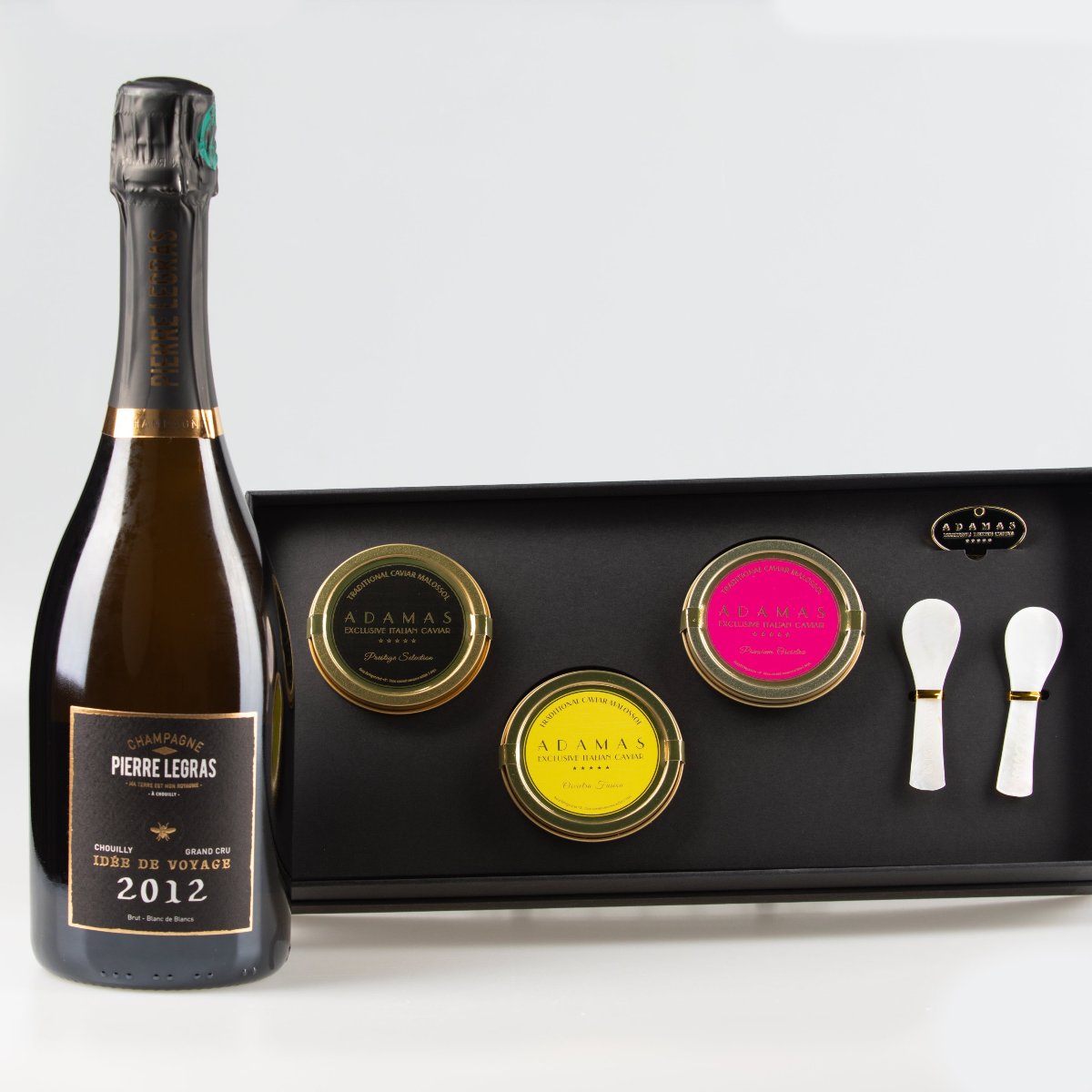 Experience the Pinnacle of Champagne and Caviar Pairing with our Vintage Champagne the Pierre Legras Idee de Voyage 2012.