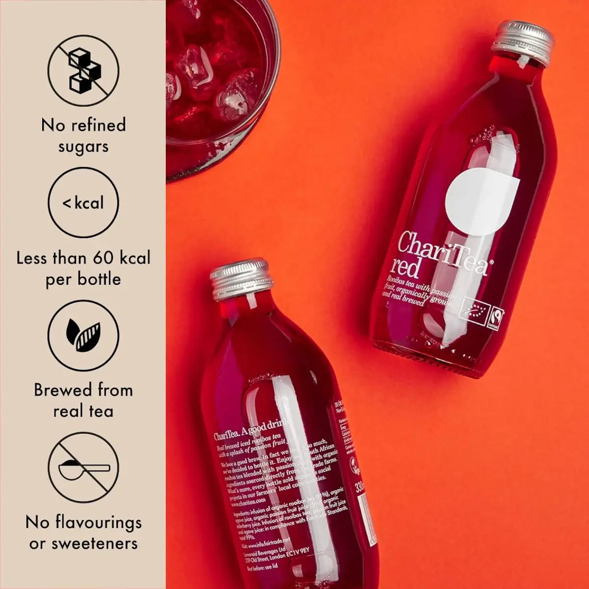Organic wild South African rooibos tea paired with passion fruit juice, real brewed and naturally sweetened with agave - not refined sugar. Contains no artificial flavourings, sweeteners or other additives. Fruity, refreshing and naturally caffeine-free.