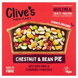Wholemeal pastry crust filled with haricot beans, marrowfat peas, vegetables, red wine, chestnuts and herbs.