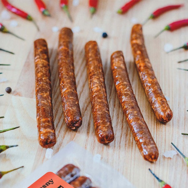 MeatLess Chilli Kabanos Sausage are a fantastic option for all fans of spicy flavours. A traditional smoking and drying process strengthens their taste, while chilli flakes make them pleasantly spicy. 160g - contains 5 Sausages