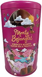 A creamy milk chocolate Easter egg (120g), cushioned on crushed tissue paper within a beautifully designed premium Gift Tin, with 6 flow wrapped award winning Choccy Scoffy cocoa dusted truffles therein. Fully recyclable, collectible and / or reusable, taking our sustainability mission further again from the previous cardboard tubes. No unnecessary plastic packaging has been used.