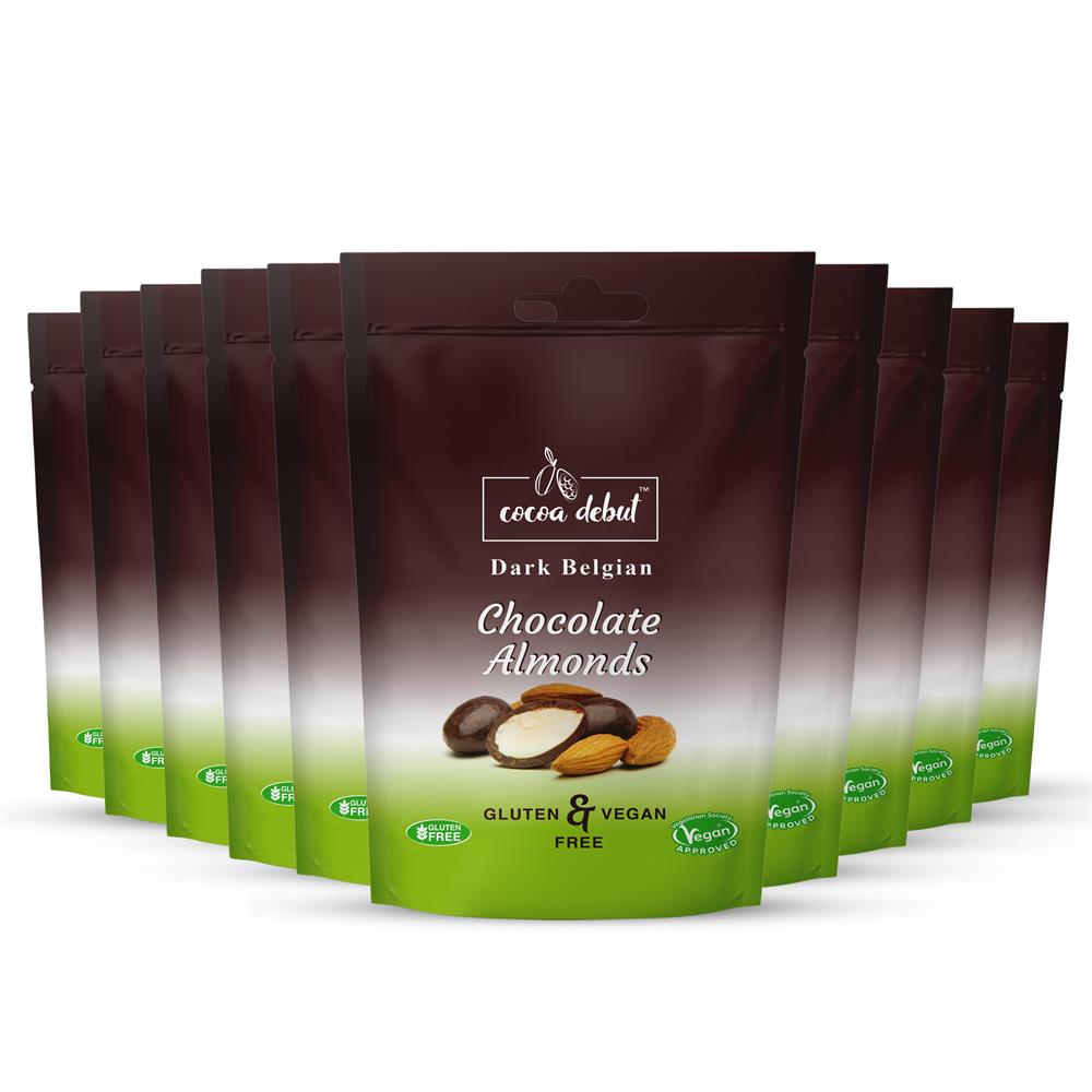 Crunchy Almonds Covered with Vegan & Gluten Free, Dark Belgian Chocolate - 45g Gently roasted premium almonds enrobed in silky smooth dark chocolate. A protein-rich, heart-healthy snack for those who need a good crunch to get through the day.