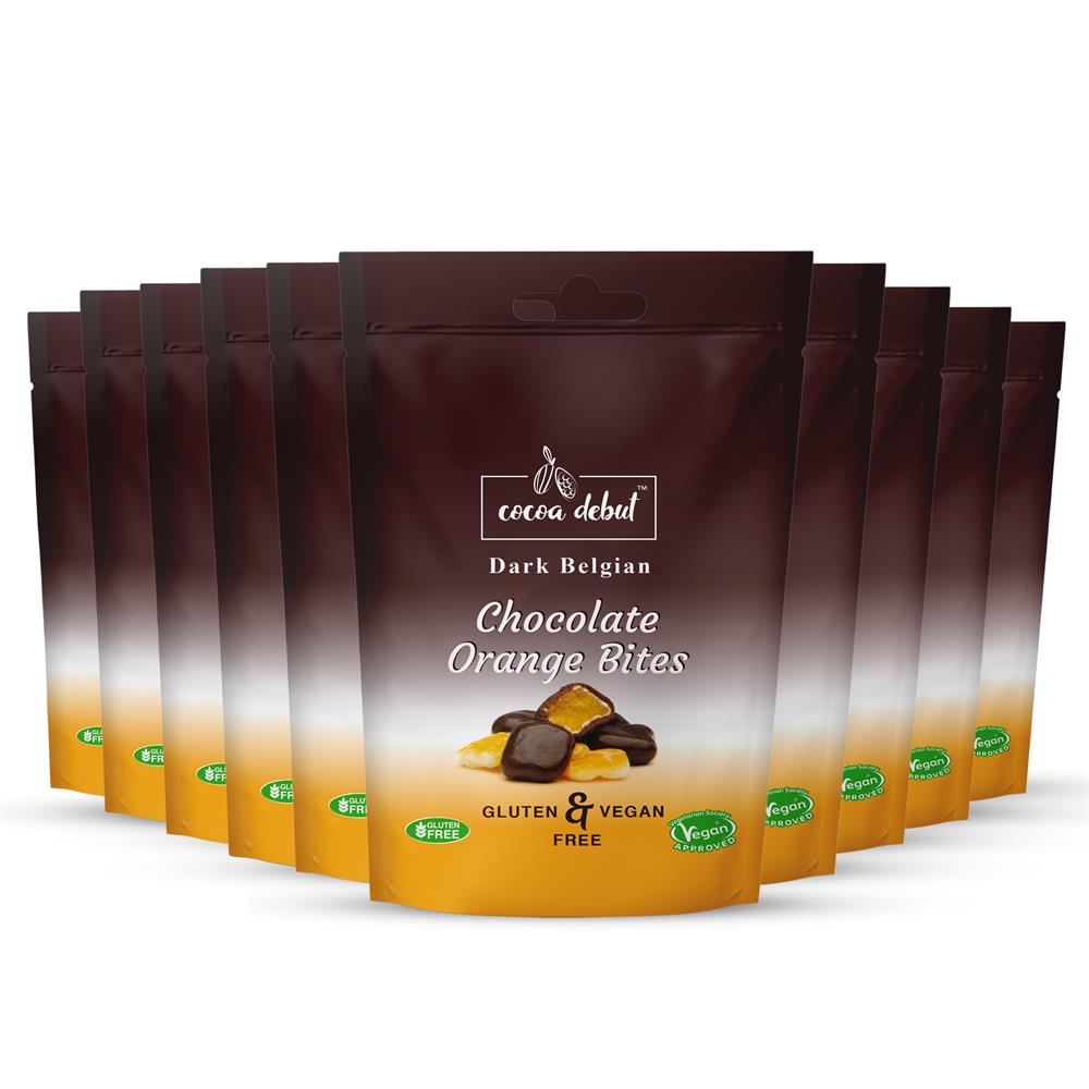 Orange Peel Covered with Vegan & Gluten Free Finest Dark Belgian Chocolate -50g A refreshing burst of citrus wrapped in smooth bittersweet chocolate. Our bite-sized chocolate orange peel treats fill your mouth with a sensational contrast of tastes and textures.