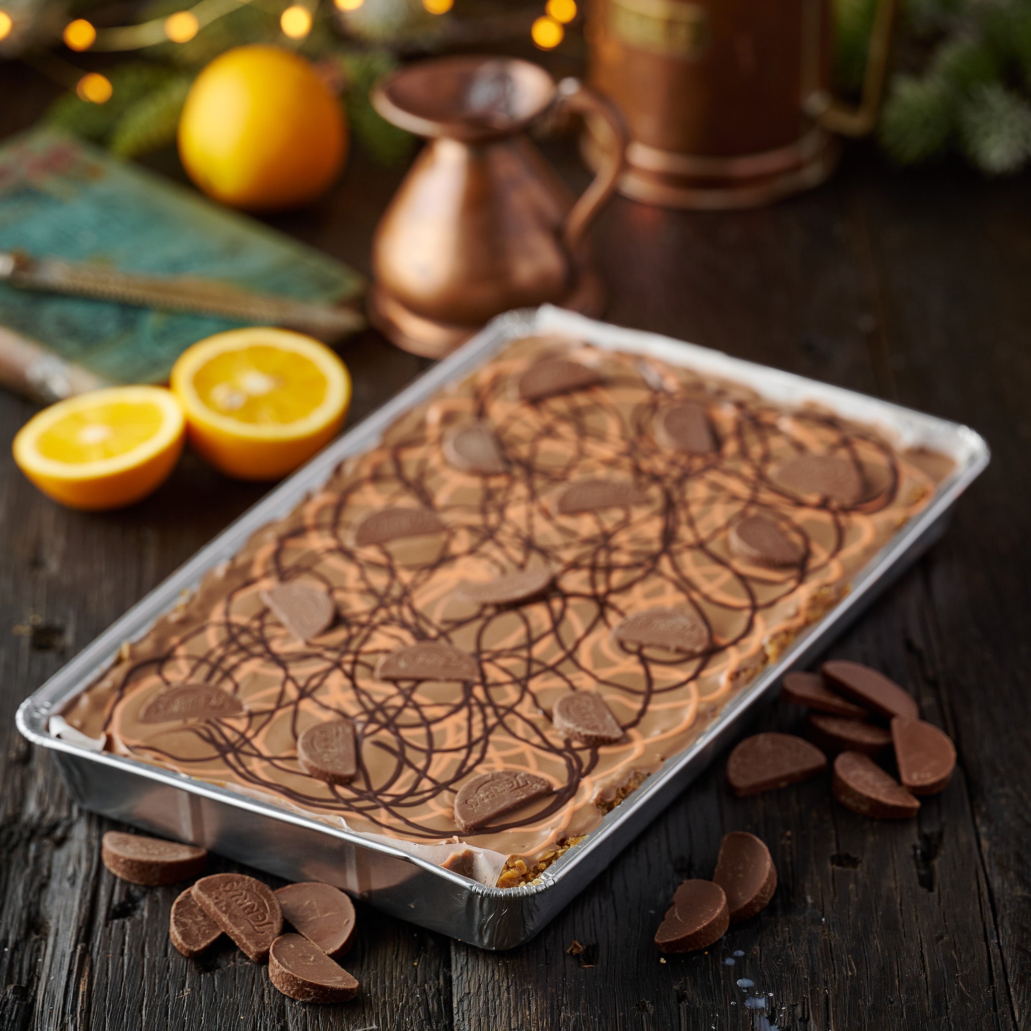 Ideal for cosy winter evenings, festive gatherings, or simply as a seasonal snack, this indulgent flapjack is sure to satisfy chocolate and orange lovers alike. Our flapjack arrives uncut, allowing you to customise each piece to suit any gathering. Slice it into large squares for sharing or cut it into mini bites for a sweet addition to Christmas parties, family get-togethers, or an indulgent treat on the countdown to Christmas.