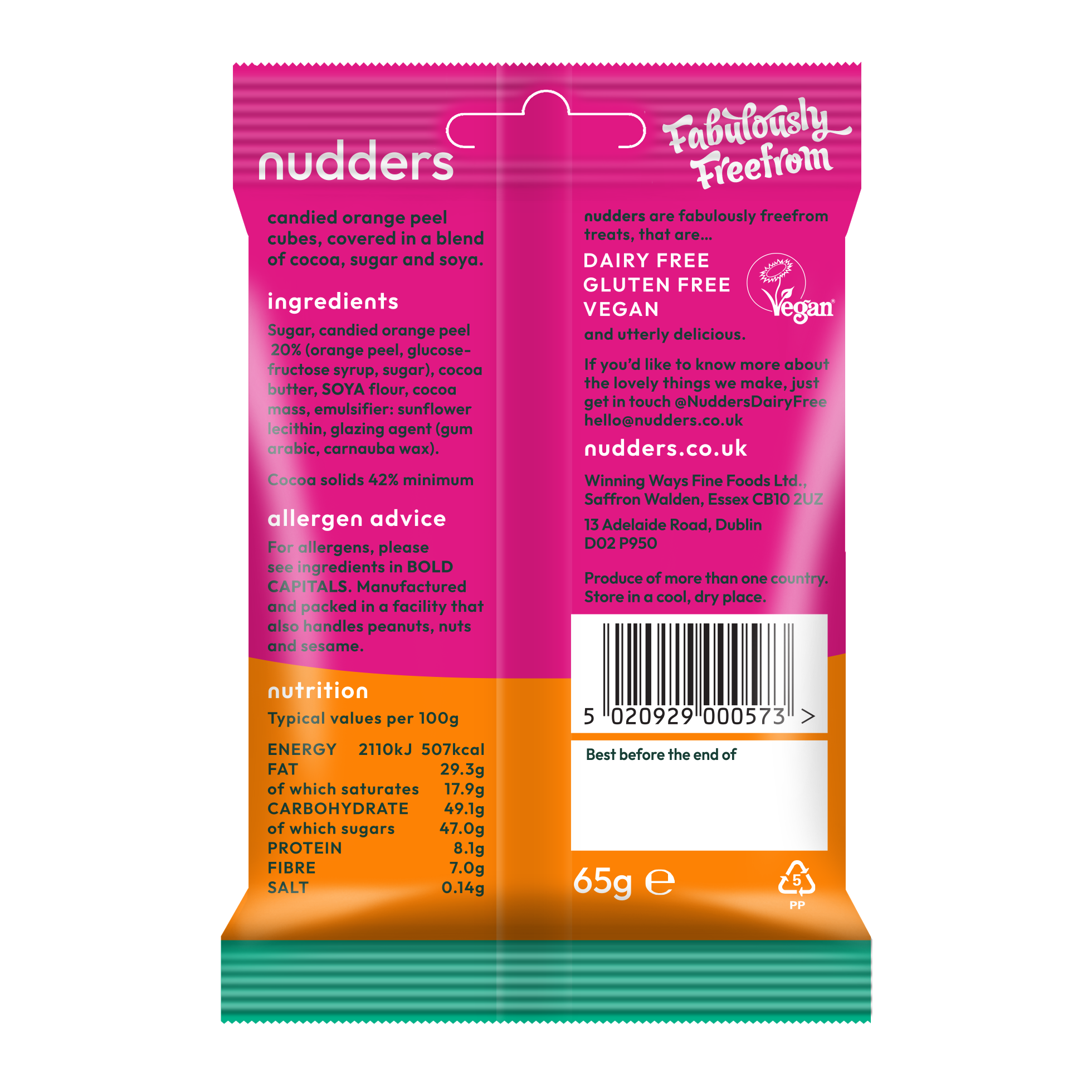 Forbidden fruit, squeezed inside dairy-free chocolate balls. Irresistible orangy bits that get under your skin and leave you wanting to binge the whole lot in one go. Fabulously freefrom nudders. Orange is the new black.