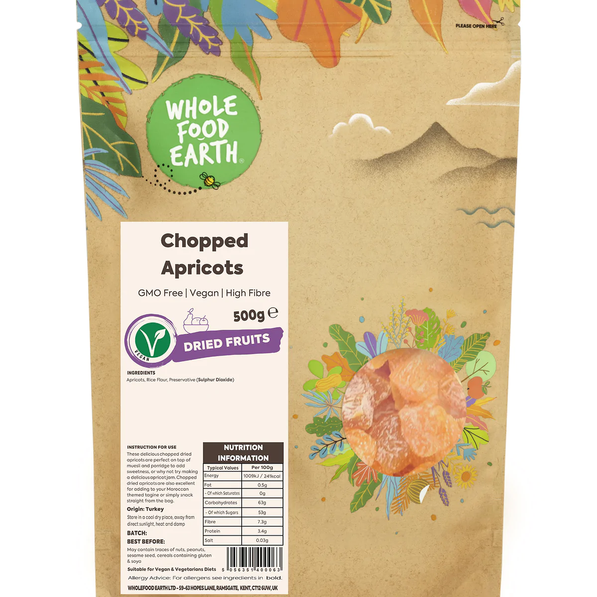 Ready to be used chopped dried Apricots are Gluten free, GMO free, Suitable for Vegans & Vegetarians